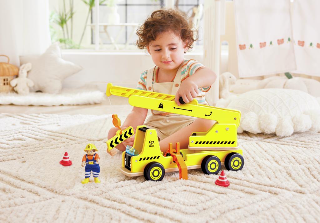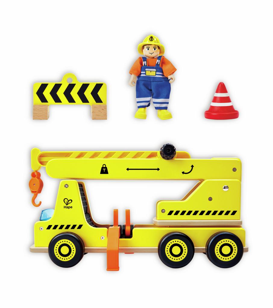| Grue mobile avec des cônes, une barrière de sécurité et une figurine flexible représentant le grutier. Avec une cabine rotative à 360°, un bras de grue extensible et un système de commande à crochet réglable, les enfants peuvent simuler avec précision les opérations de chantier de construction. À offrir à partir de 2/3 ans. Dimension : 38 X 20 X 13 cm.