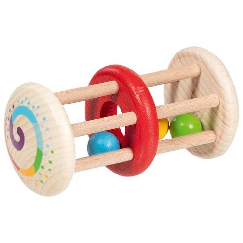 Hochet en bois naturel à agripper, à secouer et à faire rouler, les trois petites billes en bois coloré tintent lorsque Bébé manipule son hochet. À offrir à partir de trois mois et plus. Dimension : 5.4 X 5.4 X 11.5 cm.