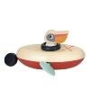 Un pélican en bois dans son canoé vogue dans la baignoire... Il suffit de tirer sur la pastille qui relie la cordelette actionnant ainsi les deux rames du bateau... Un jouet simple particulièrement bien apprécié par les enfants à partir de 2 ans et plus. Dimension : 13 X 11 X 7 cm.