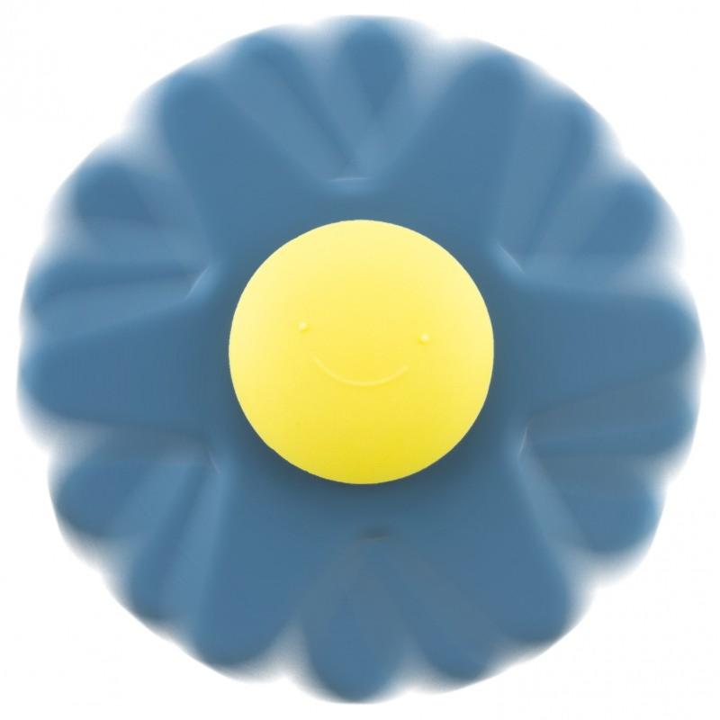 | Jouet en silicone souple muni d'une ventouse adhérant sur toutes les surfaces lisses. Le jouet est en forme de fleurs de six pétales à faire tourner ou à manipuler.