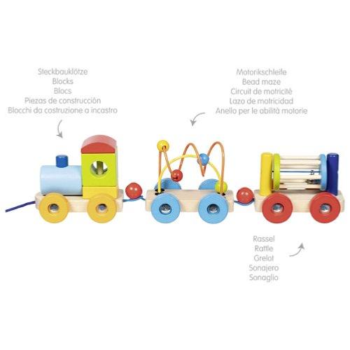 Au total, quatre activités sont réunies avec le train RIO : La locomotive propose des blocs de construction, la première remorque un circuit de motricité (boulier à fil),